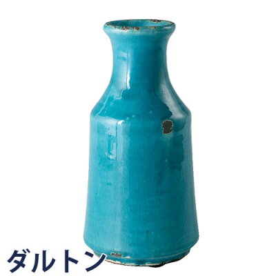 フラワーベース 花瓶 陶器 花器 おしゃれ アンティーク 横長 口が広い 花入れ 洋風 モダン かわいい インテリア 陶器のベース スモールブルー Sik6131 ギギliving